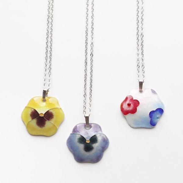 2月は毎年人気の有線七宝の体験です。 今年は純銀素地を使用して「パンジーのペンダント」を作ります。 お渡しする銀線で作れる範囲内の模様であれば パンジー以外のお好みのデザインに変更して作成することもできます。 サイズ:縦約23mm×横約23mm |
